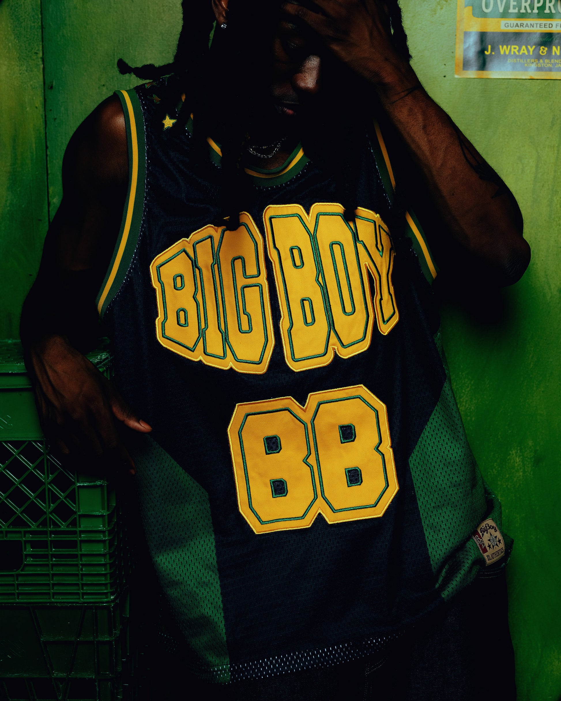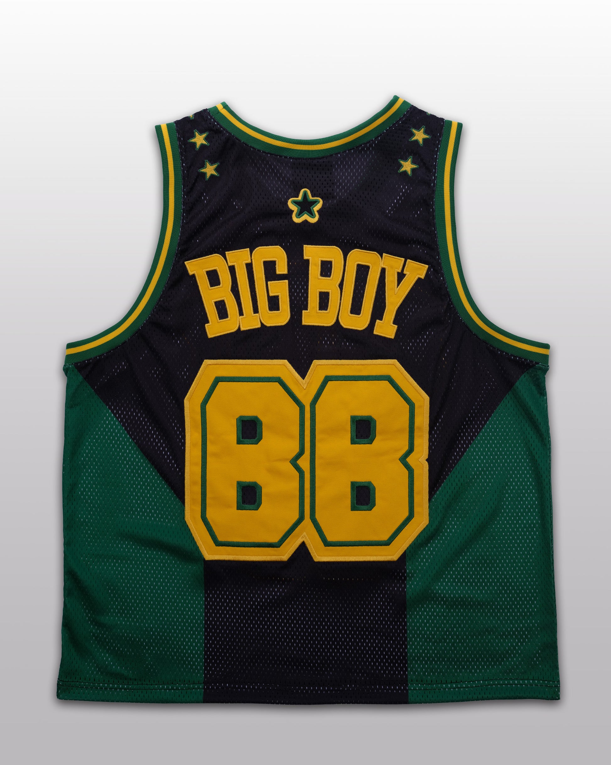 Design: “BIG BOY” embroidery arched across the chest with oversized “BB" front and back. Custom rib-knit collars and armholes, embroidered star patches at the shoulders, and subtle panel blocking