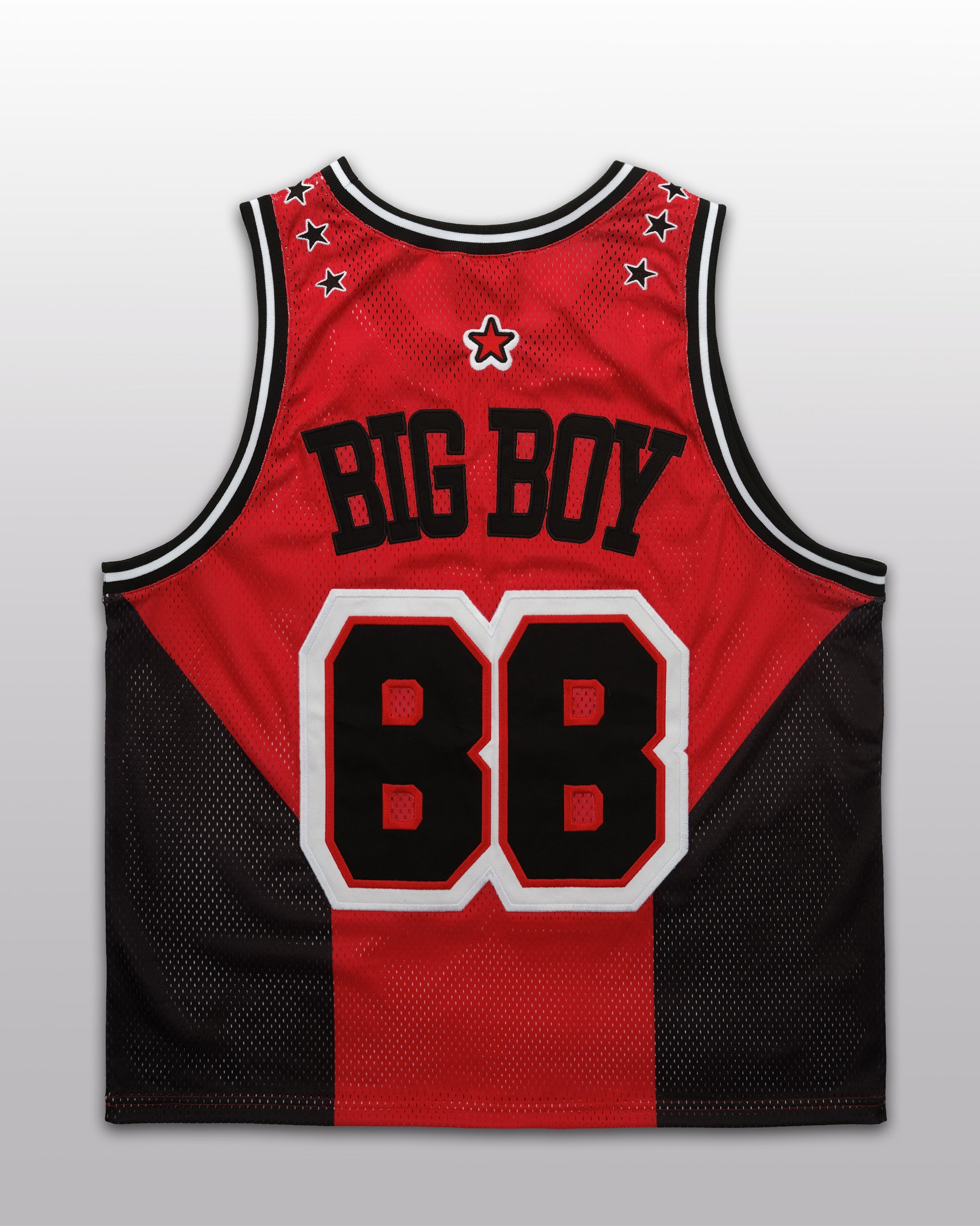 Design: “BIG BOY” embroidery arched across the chest with oversized “BB" front and back. Custom rib-knit collars and armholes, embroidered star patches at the shoulders, and subtle panel blocking