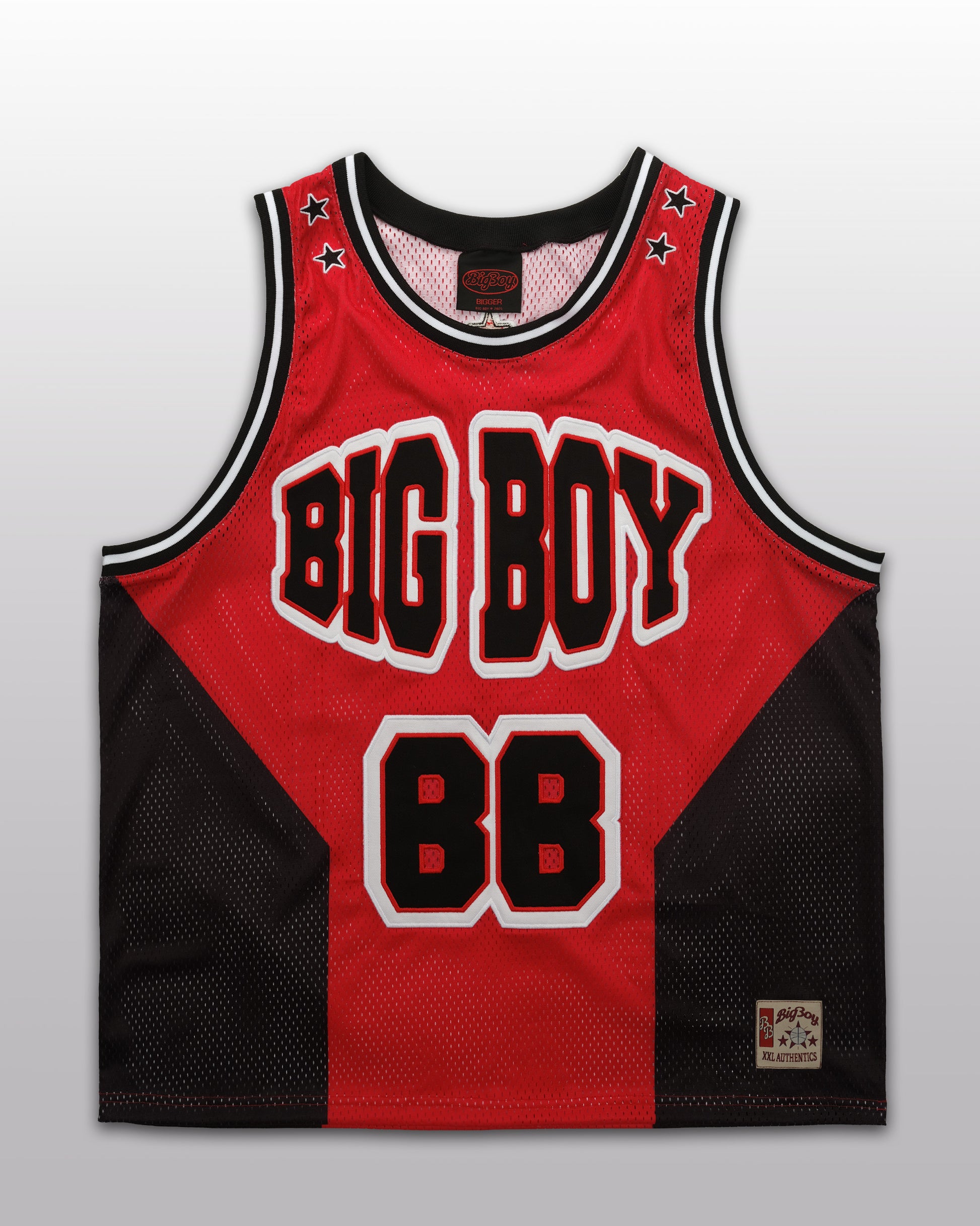Branding: Embroidered interior neck labels, Big Boy “XXL Authentics” hem patch, and contrast neck lining.